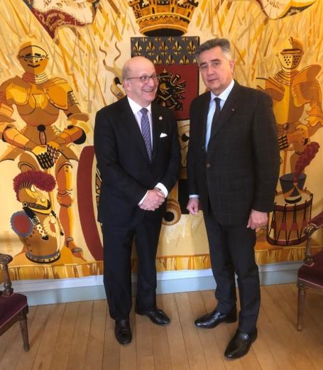 ABMF Chairman Jim Rosener meets with Gen. Christian Baptiste, head of Ordre de la Libération, Paris